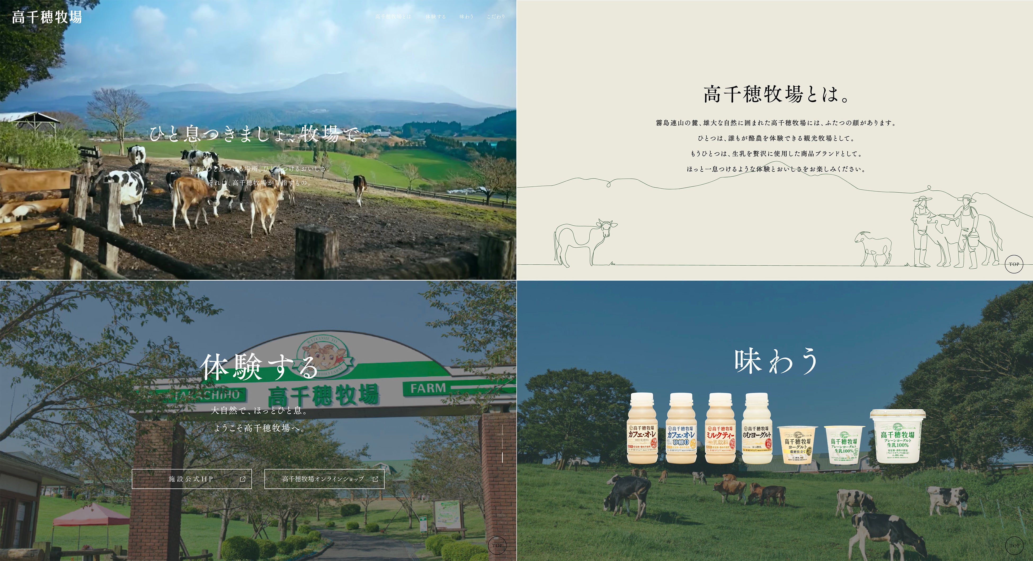 今回「ひといきつきましょ、牧場で。」をテーマに、ほっとひといきつけるような体験とおいしさを提供する「高千穂牧場」ブランドを集約したブランドサイトとプロモーションムービーをリリースいたしました。