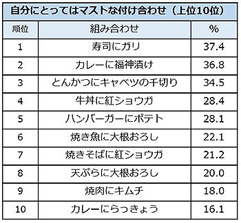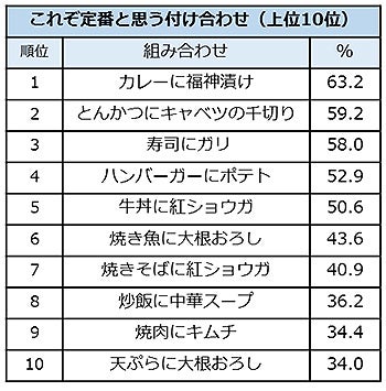 メニューと付け合わせの定番の組み合わせ 1位は「カレーに福神漬け」
