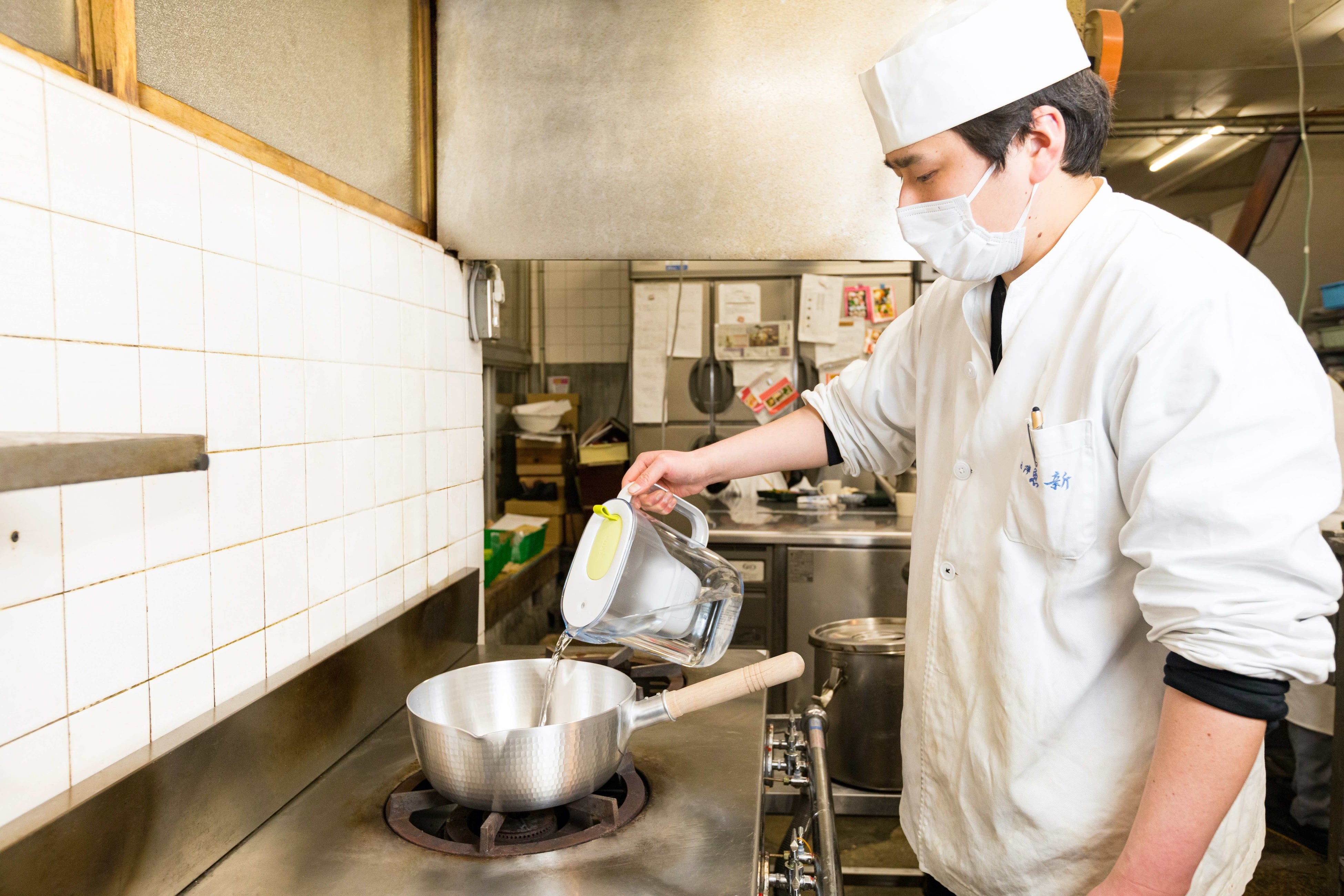 料理においても水の大切さはとても感じています。当店では井戸の水を使いますが、天然の水なので時間が経つと変化が生じることがあります。それをブリタの浄水器でろ過すると味に均一性が出てきて、昆布出汁等をとる際にもより旨味が濃く出るのです。当店では昆布とカツオで出汁をとっていますが、これから温暖化の影響で質の良い昆布が取れにくくなることが予想されます。そうなると、少量の昆布から最大限に旨味を出す必要があるので、水自体も考えていかなければなりません。そういった点でもブリタの水は出汁の旨味を最大限に引き立ててくれる質の良い水であると感じています。