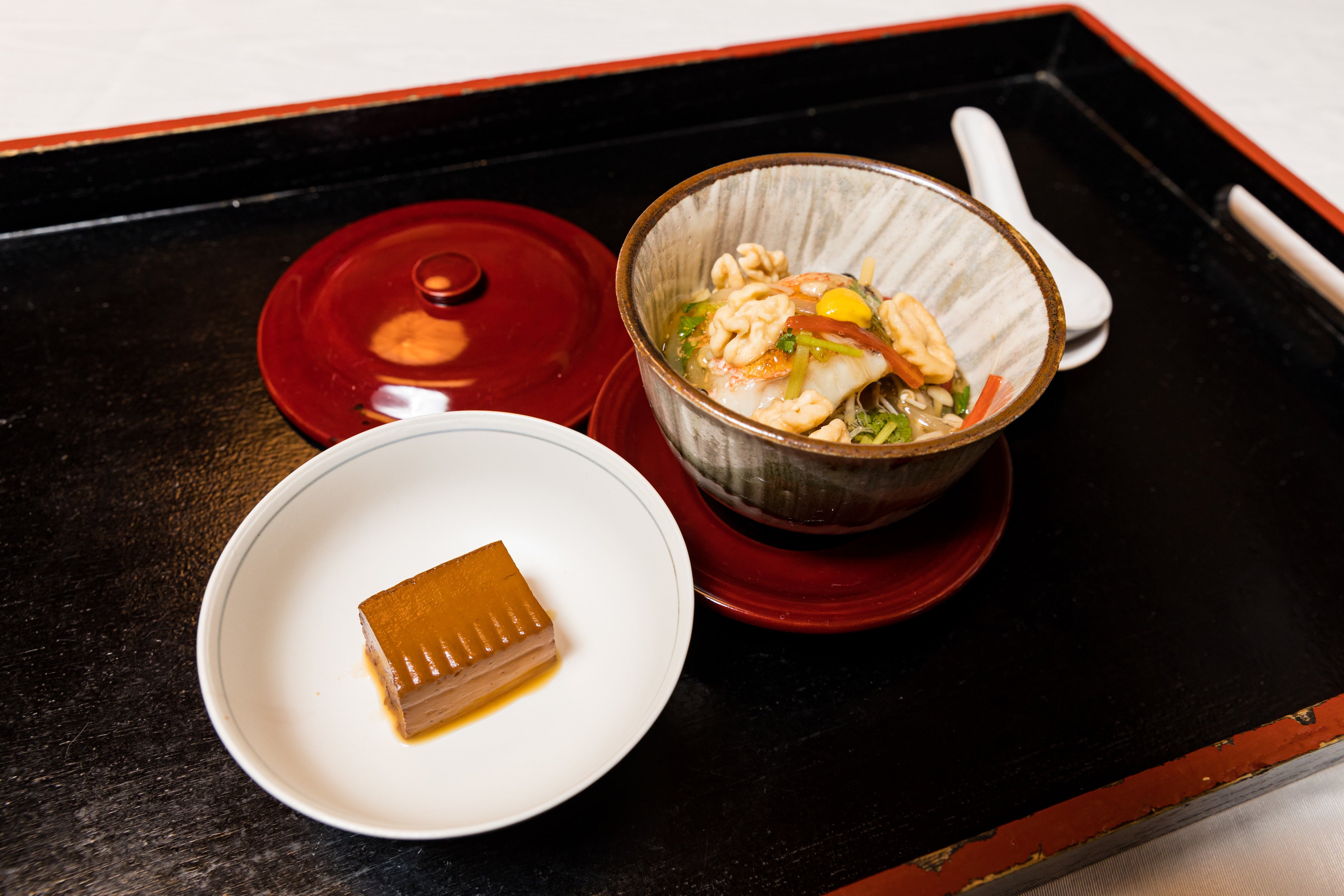 当店の名物のひとつに、煮た豆腐に若挟ぐじ(甘鯛)を乗せ、野菜の入ったあんをかけた「今出川豆腐」があります。閑院宮載仁親王はこの料理が好物で、何度もおかわりをされました。当店では、この料理を「宮様豆腐」と呼び、大切に受け継いでいます。
