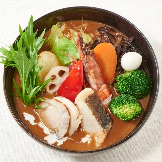 「阿寒湖レイクロブスター」は、1920年にアメリカから食用として移植されたのが始まりで、1930年に摩周湖に放流され、阿寒湖に持ち込まれ自然繁殖しました。清澄な阿寒湖で育ったレイクロブスターから、旨みたっぷりのブイヨンを抽出し、フレッシュバター、生クリーム、トマトを加えて仕上げたスープを使って札幌の人気スープカレー店<スープカレーGARAKU>が商品化。独自に調合したスパイスと「阿寒湖レイクロブスター」の旨みが詰まった一品です。