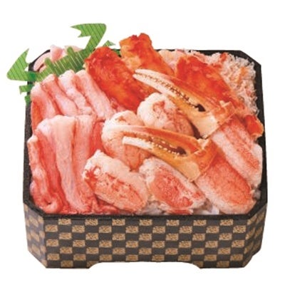 花咲がに・紅ずわいがに・ずわいがにを豪快に盛りつけた贅沢な弁当です。