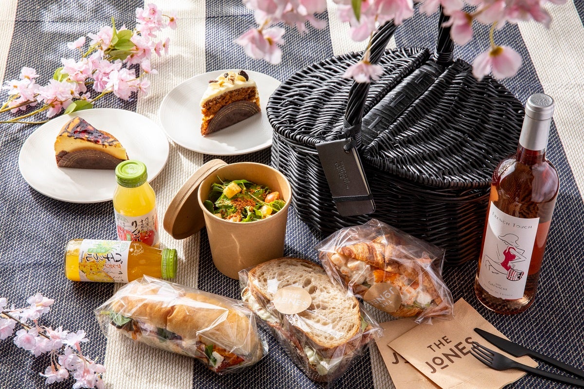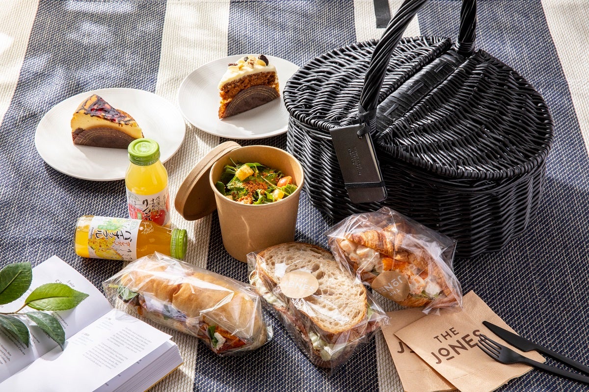 バスケットには、ザ・ジョーンズ カフェ&バーから季節のサンドイッチや季節のサラダ、ケーキ、フルーツジュースなど、アウトドアに嬉しいラインナップをいっぱい詰め込みました。ピクニックだけでなく、お花見にも外ヨガにもオススメのキンプトン・ピクニックバスケットです。