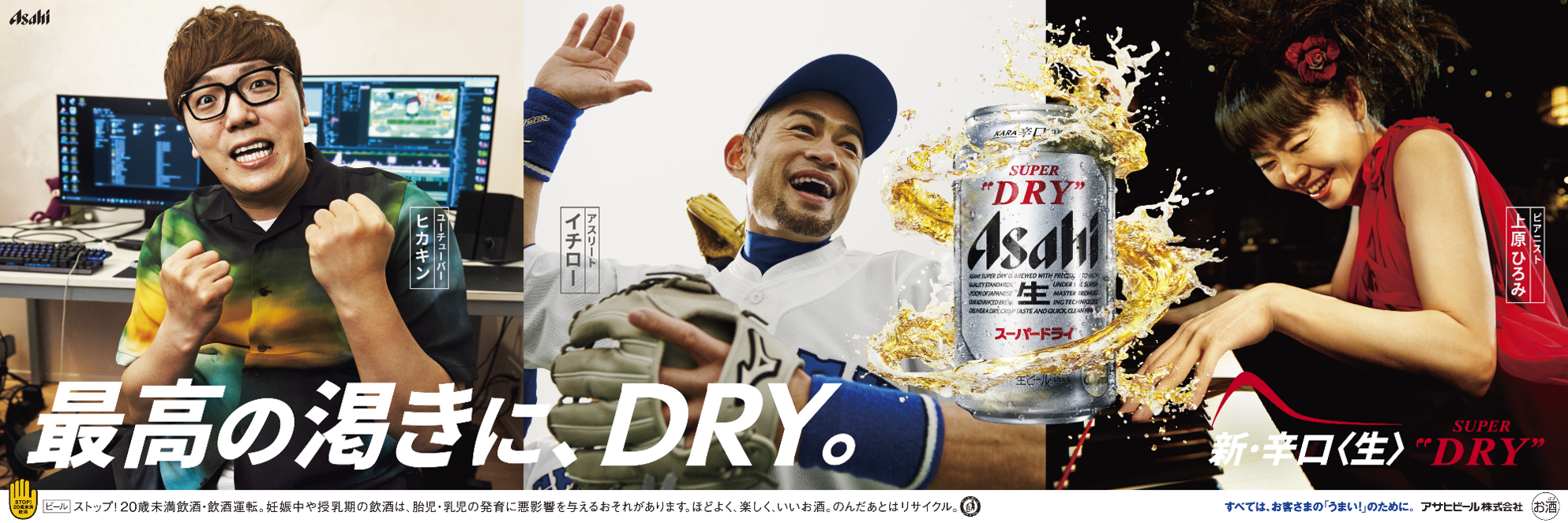 今回のTVCMシリーズは、社会地位で“上”のポジションを目指す“ステップアップ”よりも自分にしかない価値観で“前”へ進む“ステップフォワード”志向の人たちが、大好きなことにひたむきに取り組んでいる様子をドキュメントとして切り取るシリーズです。新しくなった「スーパードライ」が気持ち高まる瞬間に寄り添うブランドであることを“最高の渇きに、DRY。”というメッセージを通じて訴求します。第1弾はメジャーリーガーとしての現役を引退された今もなおアスリートとして活躍するイチローさん、第2弾はYouTuberのHIKAKINさん、第3弾はピアニストの上原ひろみさんが出演し、気持ちが高まった時にこそ飲む「スーパードライ」が“最高にうまい”ことと“自分のやりたいことに向かって一歩進む人を応援するビール”であることを表現していきます。