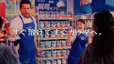 今年は美声の店長『ええ声店長』としてCMに登場。「いつでも、どこでも、水なしで、美味しく続けられる」という「UHAグミサプリ」「UHA瞬間サプリ」の魅力を薬局の店長として働きながら、踊りながら(?)も、圧倒的な歌唱力で歌い上げます。こんな店長のいる薬局に行きたいと思わせるような、圧巻の歌声と迫真の演技、コミカルなダンスもある盛りだくさんなシリーズCMとなっております。