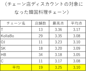 食べログが恣意的に選定したチェーン店飲食店の点数が、食べログユーザーがつけた口コミ点数とは関係なく、最大で0.5点ほど下がるという差別的アルゴリズム