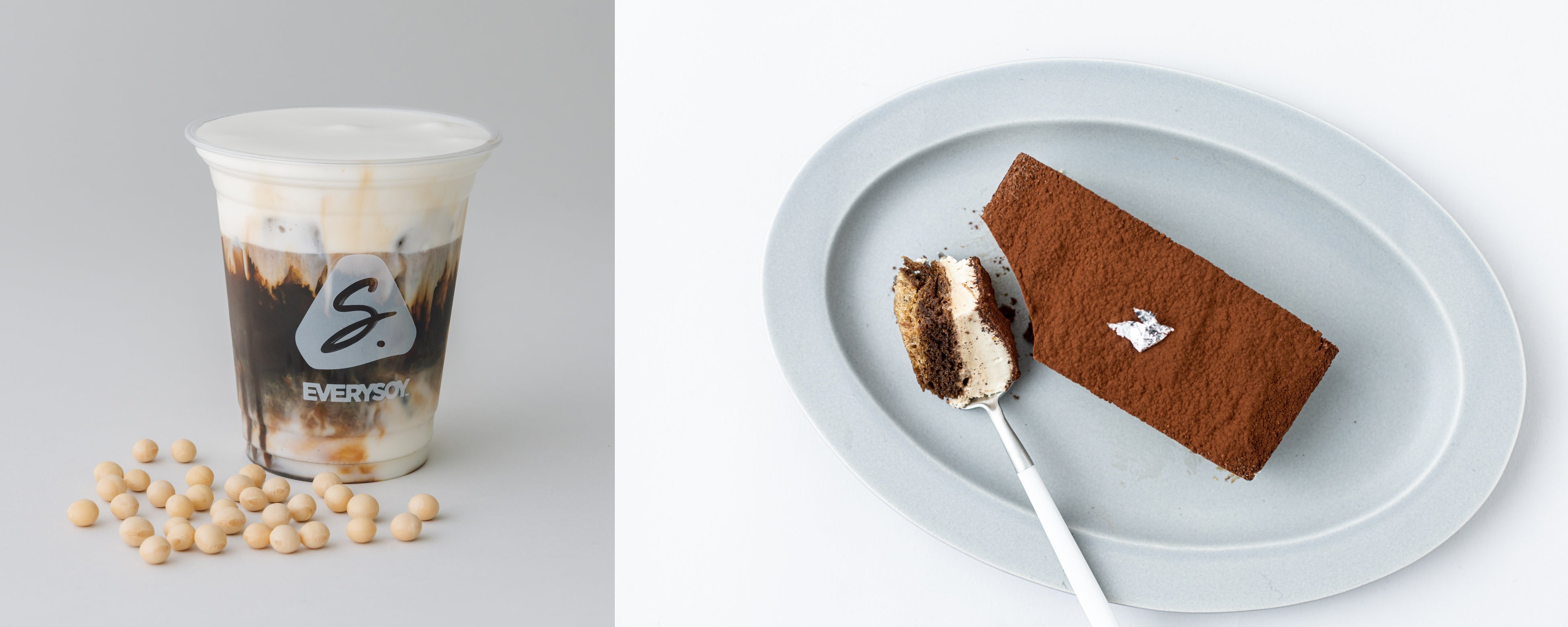 本来、無調整豆乳は分離しやすく、コーヒーとは相性が良くない食材ですが、「SOICINO LATTE」は、特別に自家焙煎した豆を使用することによって、この課題を克服。無調整豆乳と、フルーティーなエスプレッソのフレーバーがマッチした、こだわりの豆乳ラテに仕上げています。乳製品不使用とは思えないクリーミさと軽い口当たりに驚く「ソイティラミス」は、米粉を使用したグルテンフリースイーツ。スポンジに染み込ませたエスプレッソの豊かな香りも魅力です。