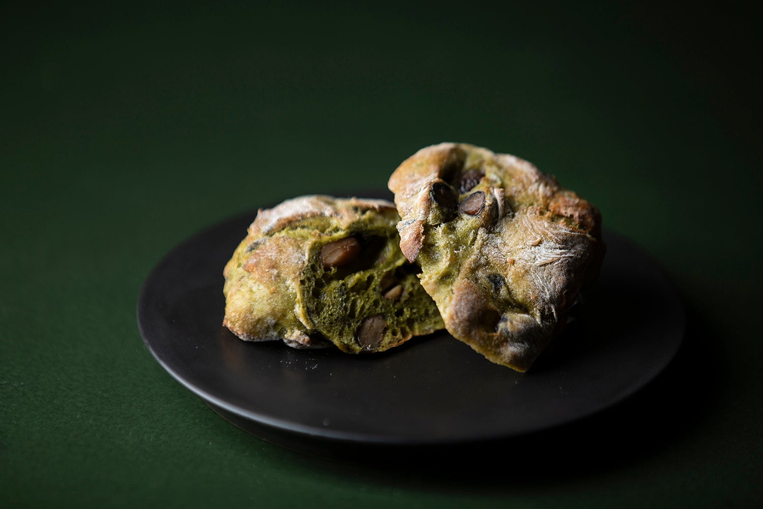 <京都限定>抹茶黒豆チャバタ 1個 税込302円 ※写真はイメージ。1個をカットしたもの。