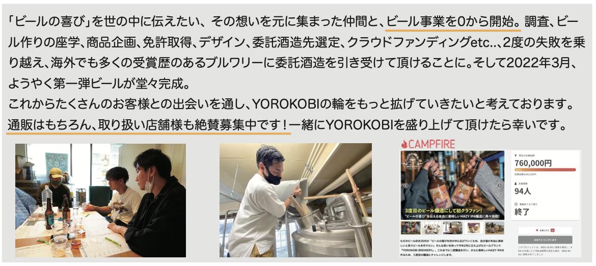 ・ビール酒造販売事業「YOROKOBI BREWERY」https://yorokobi.me/