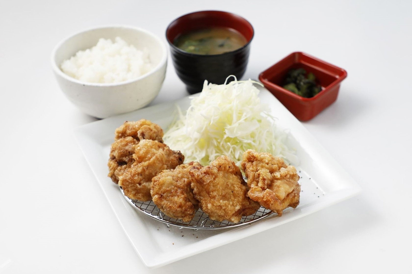 からあげグランプリ®10年連続金賞受賞中の秘伝のタレを使用した「もも肉」のからあげ。衣がサクッ中身はジューシーお店でも一番人気の部位を使用しました。秘伝のしょうゆダレにしっかりと漬け込み、独自製法で揚げる事でサクっとジューシーな食感をお楽しみいただけるボリューム満点な定食です。