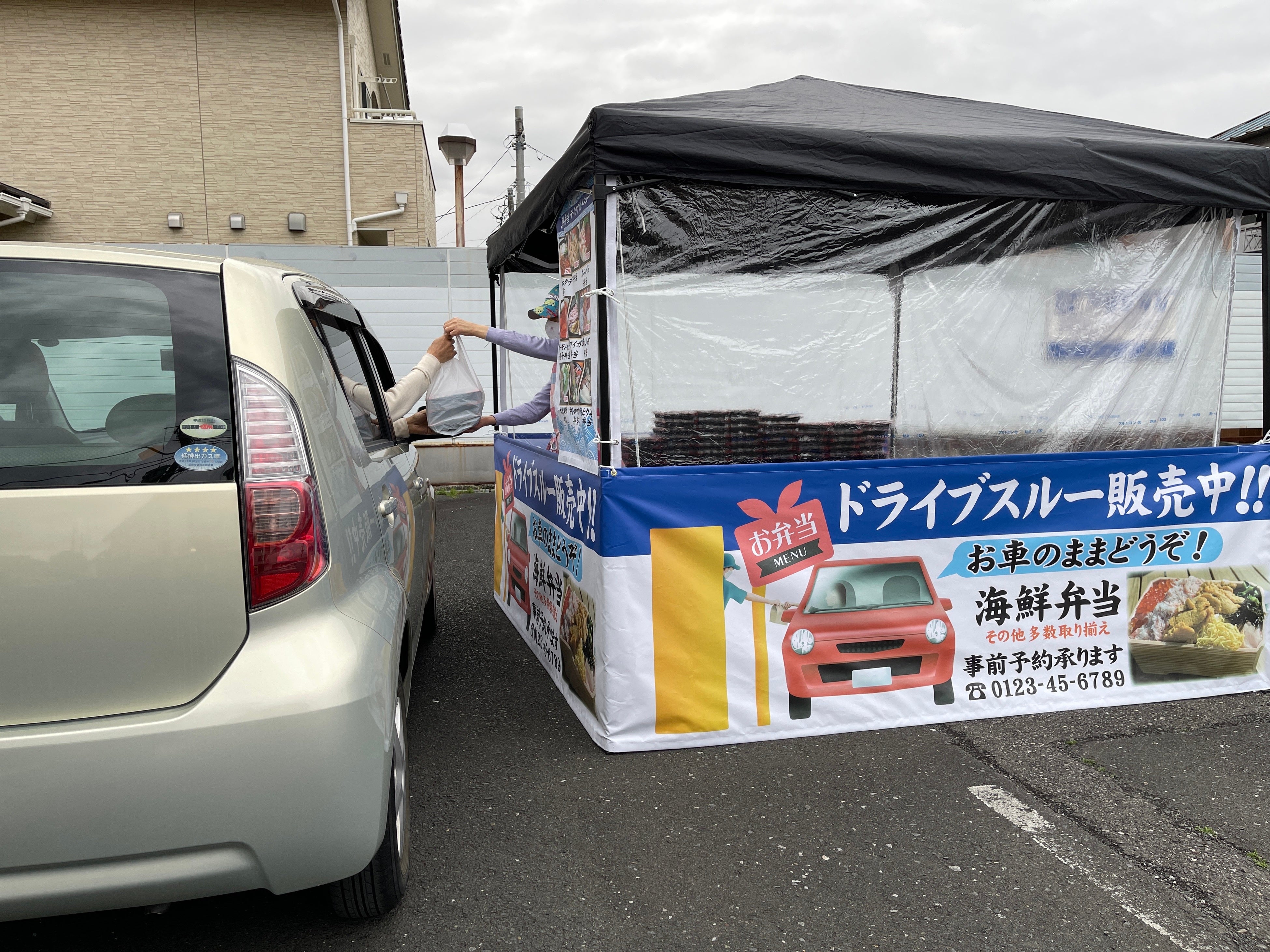 地方がこの流れに乗る為には ドライブスルーでのテイクアウト販売が必要です。簡単に設置できるドライブスルーコーナー(タープテント式)で 新たな販売チャネルを構築して下さい。