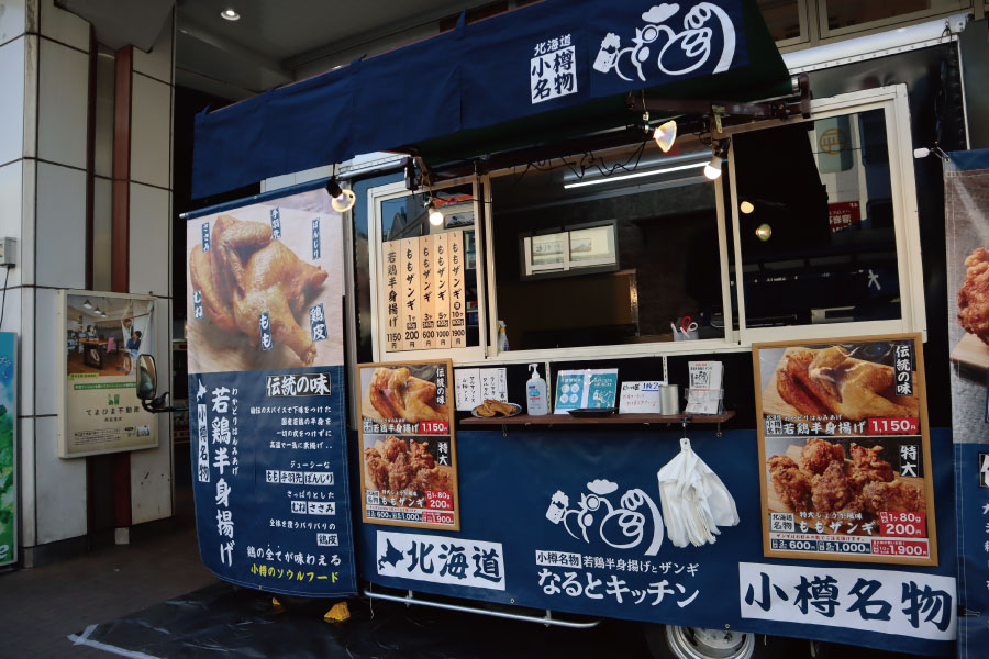東京・神奈川・埼玉・千葉を中心に日替わりで回るキッチンカーも行なっている。駅前や商業施設前で一際目立つ青いボディーが目印のキッチンカーでは小樽名物”若鶏半身揚げ”と”ザンギ”(唐揚げ)を販売。
