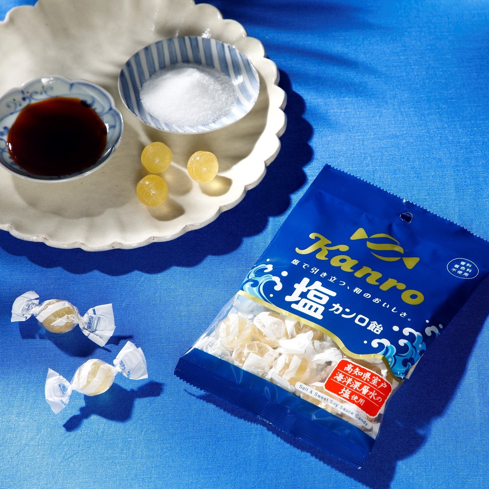 そんなカンロ飴シリーズの中でも、「塩カンロ飴」は、素材の良さを活かす「カンロ飴」ブランドの志を引き継いだ味わい深い塩飴です。高知県室戸産の海洋深層水の塩と「カンロ飴」の特徴である醤油のコクがほどよく合わさり、コクと旨味のある塩飴として仕上がっています。