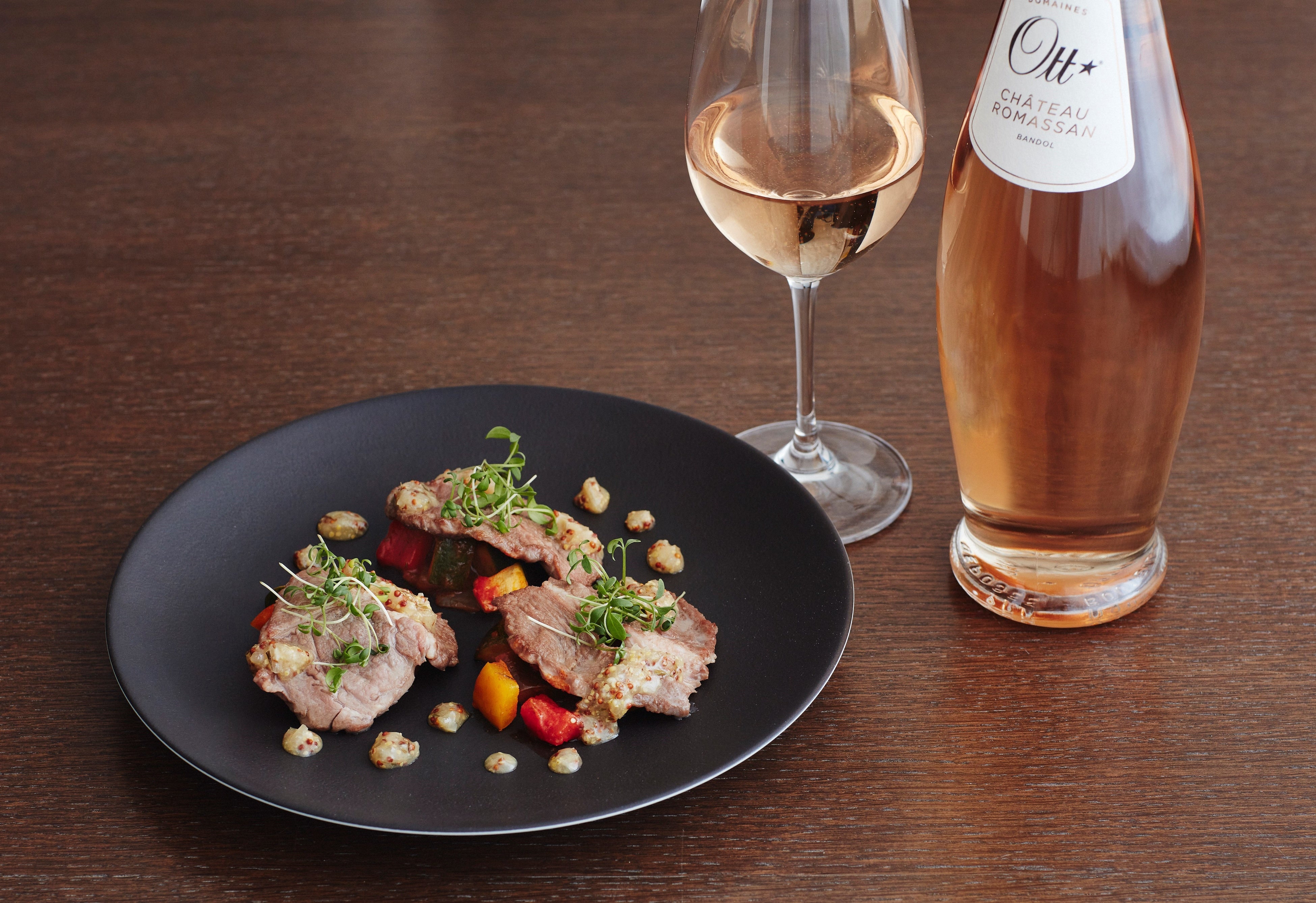 飼料が異なるラム肉の味わいの違いをお楽しみいただけます。特有の風味があるラム肉をさっぱりいただける粒マスタードソースのレシピと、その魅力を絶妙に引き出すロゼワインがセットになっています。