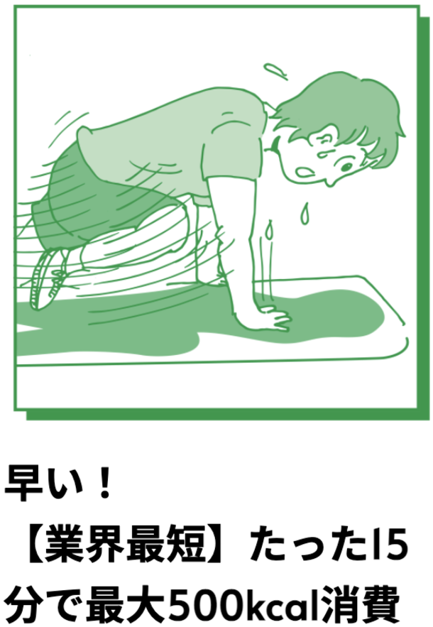 短い時間なので通いやすく継続しやすい。ランチタイムやスキマ時間に鍛えることも可能。短時間・超集中でラーメン1杯分のカロリーを燃やし尽くせ!