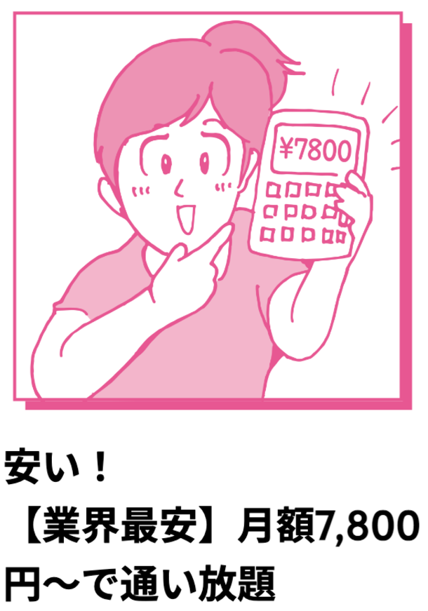 値段 :通常プラン 月額7,800円(税込):1日1回1ヶ月通い放題