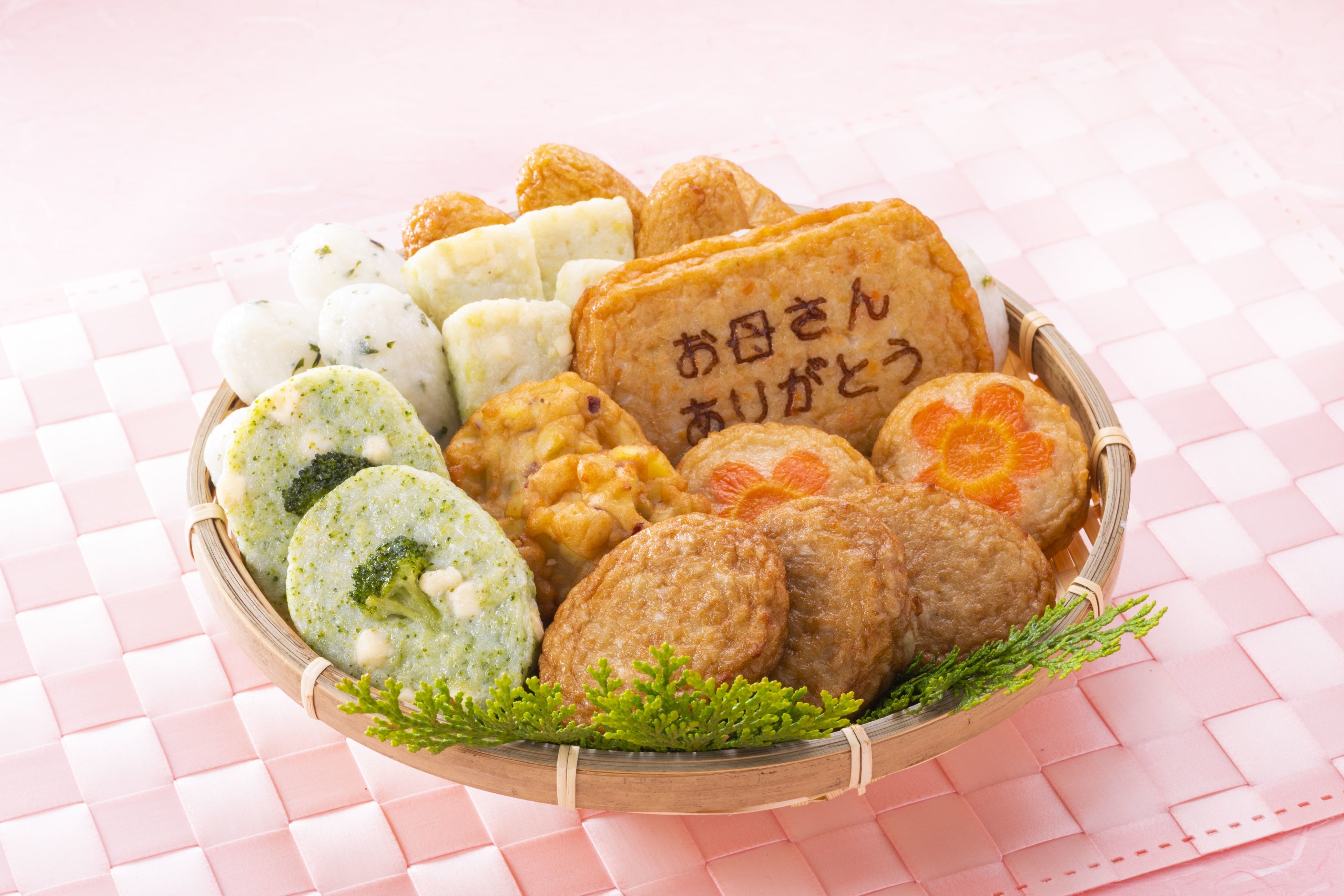 『ありがとう』を焼印した薩摩揚やお母さんの健康を想い色とりどりの夏野菜を具材に取り入れたヘルシーな薩摩揚を詰合せにしました。