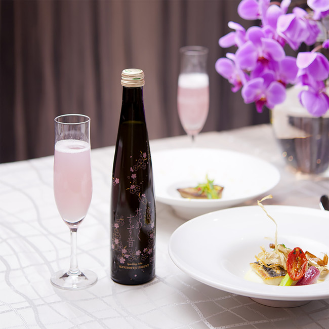 本品は、1988年に発売を開始したスパークリング日本酒のパイオニア的商品「一ノ蔵発泡清酒すず音」の季節限定品。目でも楽しめるお酒として、すず音をベースに、地元宮城県産の黒豆と紫黒米から抽出した色素を加え、可憐なピンク色に仕上げました。麗らかな春の食卓も鮮やかに彩ります。