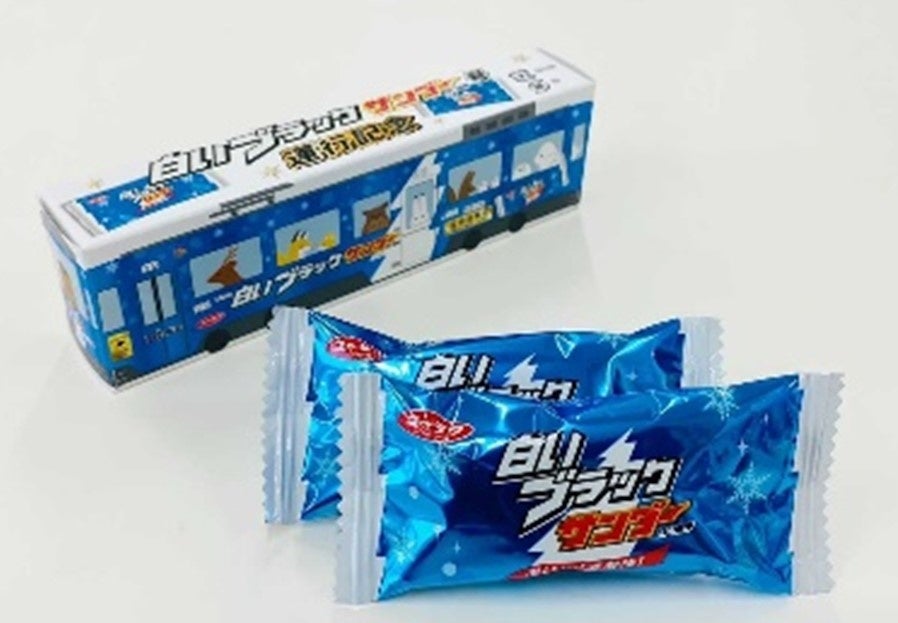 白いブラックサンダー号の運行を記念し、4月5日(火)・4月6日(水)に乗車していただくお客様に数量限定でオリジナルデザインのノベルティをお渡しいたします。この度、白いブラックサンダー号のデザインの箱に、白いブラックサンダーが2袋入った記念ノベルティをご用意しています。