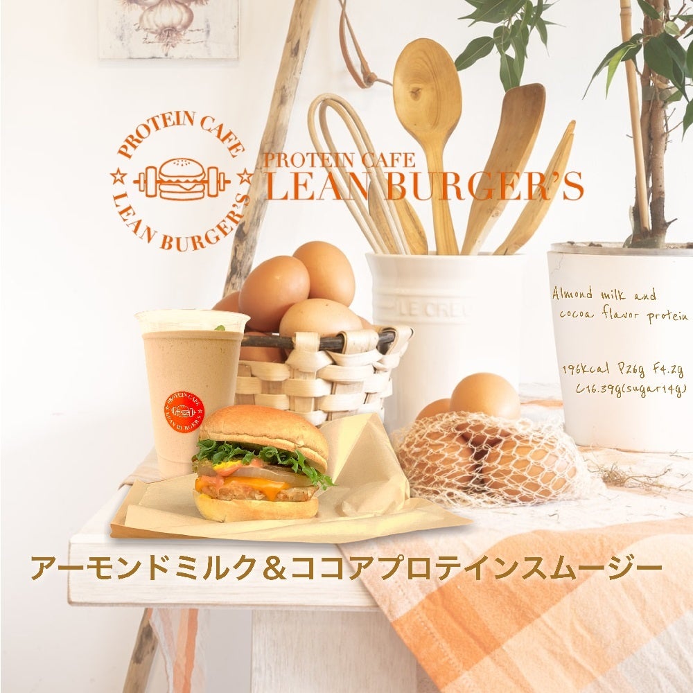 ボディメイクバーガーのPROTEIN CAFE LEAN BURGER’S(恵比寿)が1周年記念に選んだのはアーモンドミルク「アーモンドミルク&ココアプロテインスムージー」を4月10日より発売!