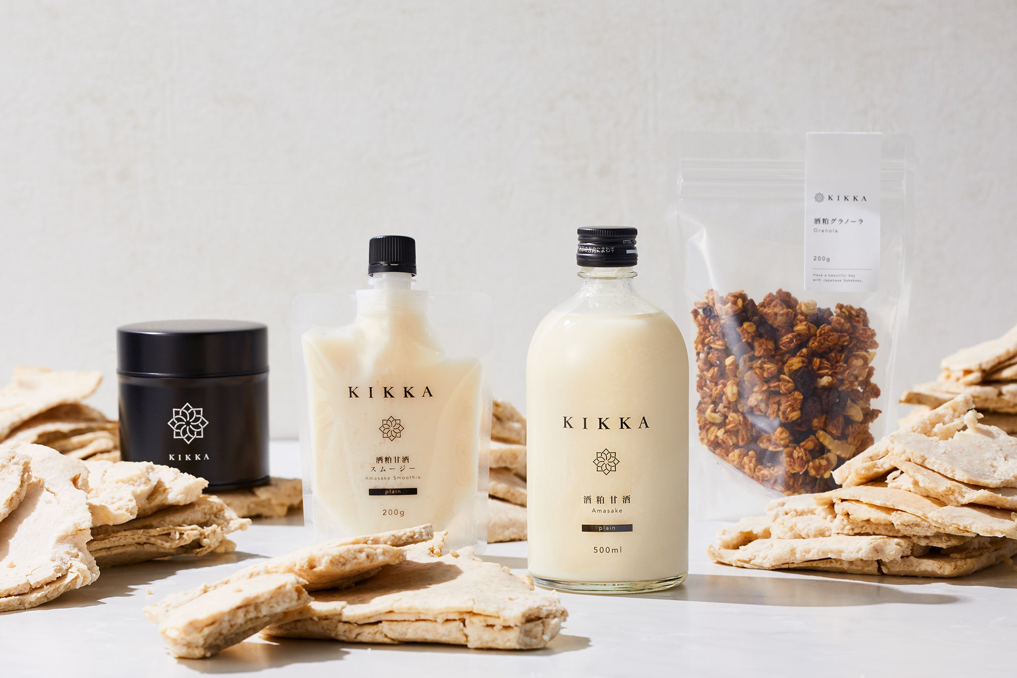 年間で約3万トン相当(※1)にもなる酒粕。発酵のパワーにより豊かな栄養素を持つにも関わらず、食用としての利用の減少に伴い、飼料肥料として活用される他廃棄されるケースもあり、酒蔵で処分の対応に苦慮されている現状があります。KIKKAでは、そんな酒粕を現代のライフスタイルに合わせた加工食品へ再生することで、酒粕に新たな価値を生み、その恩恵により美しく健やかな毎日を創造していくことを目指しています。