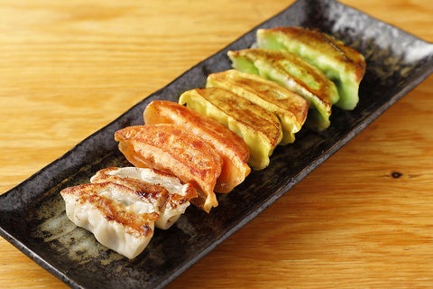 餃子研究所の名の通り、お酒に合う餃子を求めて研究を重ね、たどり着いたのが今のオリジナルレシピ。もっちり感の強い愛知の銘柄豚みかわポークを使用し、昆布、乾燥シイタケ、鰹節、ニンニク、三重県四日市の九鬼の胡麻油の旨味を重ね、お酒に合うよう黒コショウを利かせ、皮の厚さにもこだわりました。定番の焼き餃子をはじめ、多彩な餃子や、餃子料理としてお楽しみいただけます。