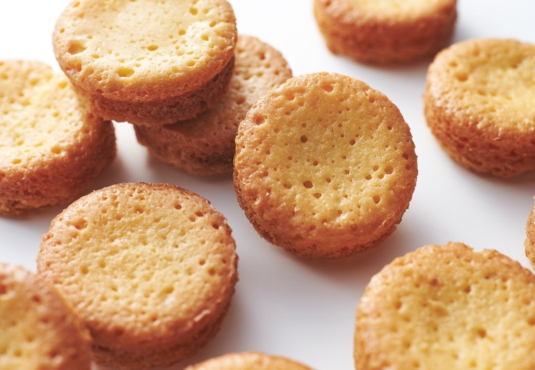 バターの風味豊かなさっくりとしたクッキーと、卵の風味豊かなやわらかい口どけのクッキーの間に、ほろ苦いキャラメルフィリングをサンドしました。