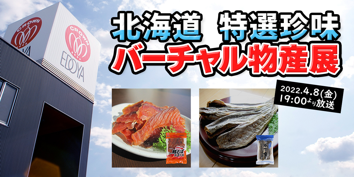 当日の放送では、常に最高品質の製品を提供する珍味業界のトップ企業『株式会社江戸屋』様をゲストに迎え、主力商品である「鮭とばや氷下魚(こまい)などの乾き物・珍味セット」を多数ご紹介いたします!