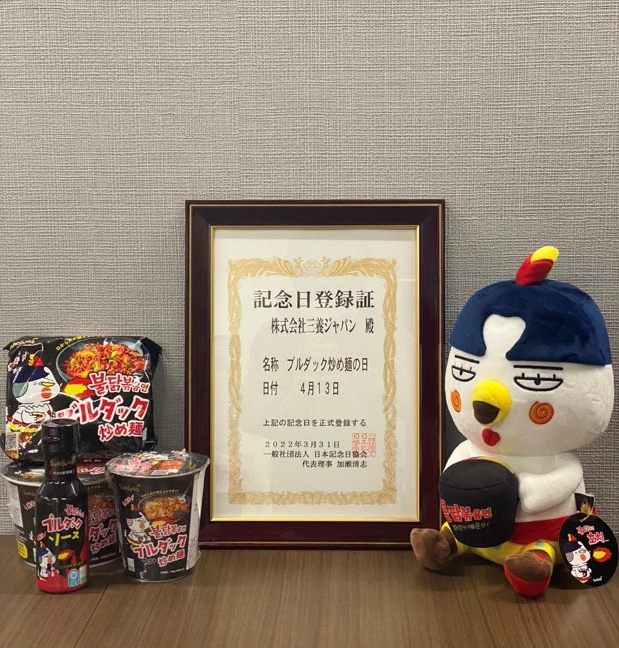 株式会社三養ジャパン(東京都新宿区 代表取締役:高海正)は、4月13日を「ブルダック炒め麺の日」と定め、正式に一般社団法人日本記念日協会(代表理事 加瀬清志)の認定を受けました。今年10周年を迎えるブルダック炒め麺のキャンペーンも開催が決定しました。