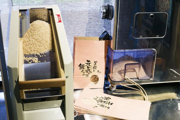 店内に精米機を導入し、朝の仕込みは「精米」から始まります。