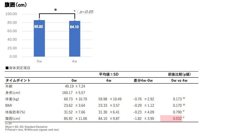 善、肌の調子の改善、ウェストサイズの減少が見られることを確認いたしました。