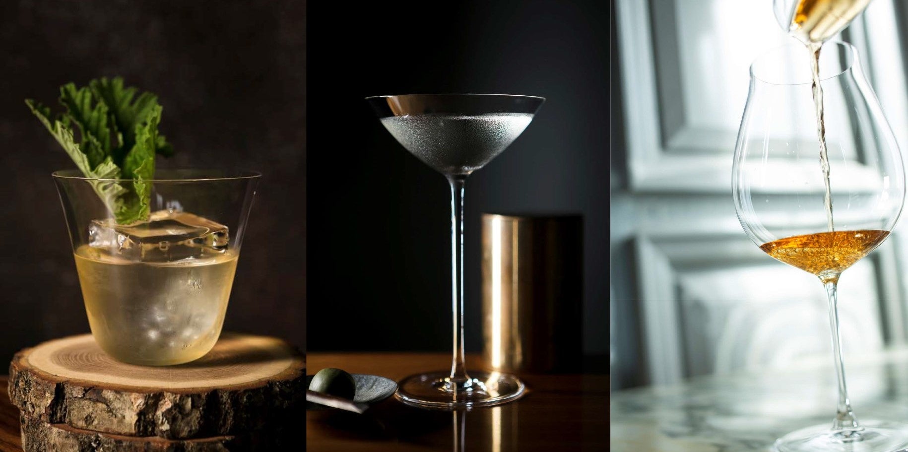 ※左からジェラニウムと吟醸酒のカクテル、玉露と大吟醸のマティーニ、芋焼酎と台湾茶のカクテル