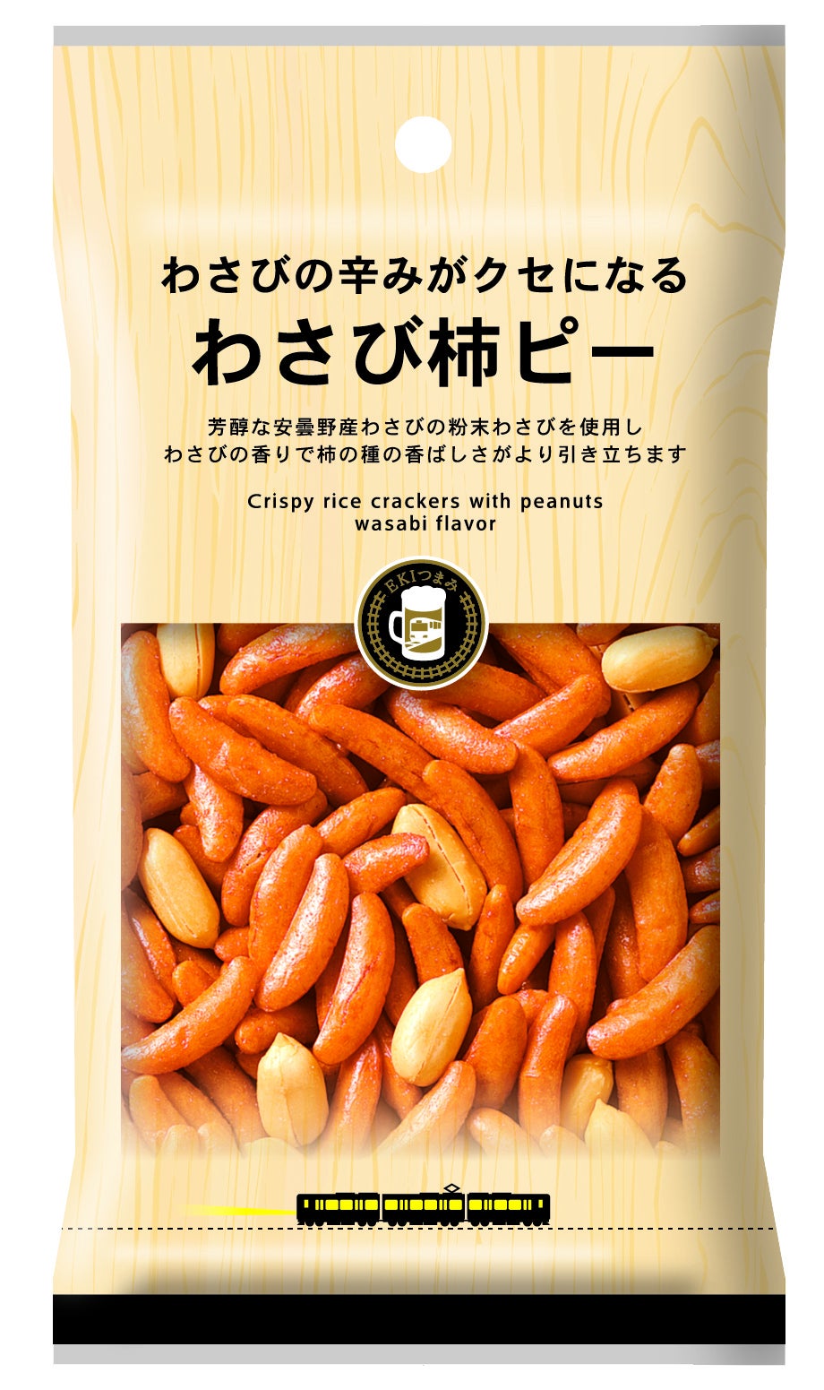 芳醇な安曇野産わさびの粉末わさびを使用し、わさびの香りで柿の種の香ばしさがより引き立ちます。