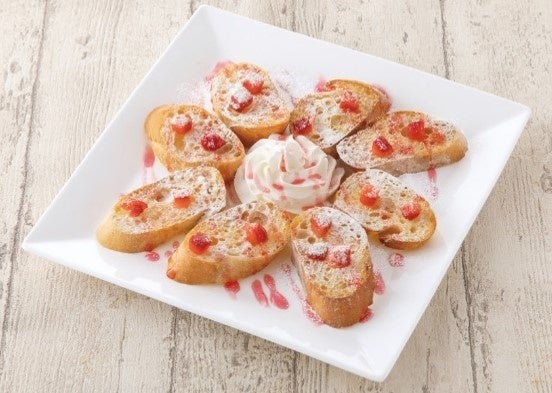 【イチゴのシュガーバタートースト】サクサク食感と、甘酸っぱいいちごとホイップの絶妙なハーモニーが楽しめます。