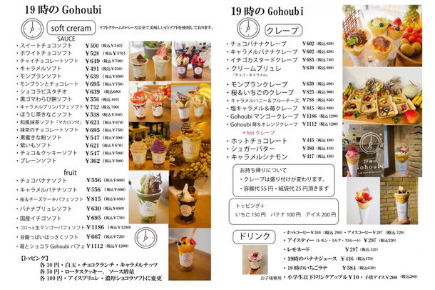 19時のGohoubiメニュー表