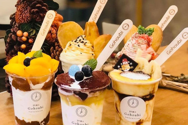 “深夜23時まで営業のソフトクリーム&クレープの専門店”で話題の「19時(いくじ)のGohoubi」。店名には「日常の中に少しの喜びとご褒美を」、「コロナ禍で大変になった育児に、19時のご褒美」という、2つの思いがこめられています。「夜遅くに食べられる本格スイーツ」とSNSで話題になり、1店舗目のオープンからわずか1年間で、4店舗目のオープンとなります。また、兵庫県初出店となります。