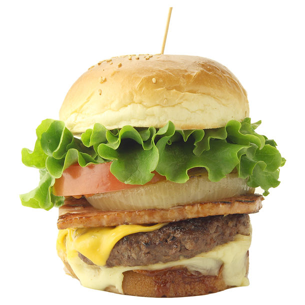 塩屋CAFE特製の淡路牛100%のパテを使い、新鮮な野菜と一緒にはさんだボリュームあるバーガー。