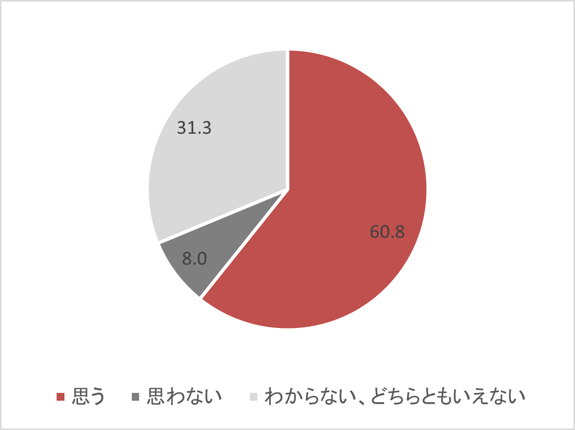 子供と母親のいる女性(800名)に「今年の母の日は、コロナ禍で迎える3度目の母の日となります。今年の母の日に、メールや動画ではなく、手紙やカードなどのアナログなかたちで感謝の気持ちを伝えてもらえたら嬉しいと思いますか?」と質問をしたところ、「思う」が60.8%、「思わない」が8%、「わからない、どちらともいえない」が31.3%という結果に。