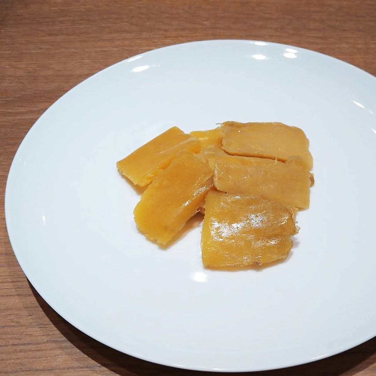 焼き芋のおやつは、九州で秋に収穫された紅はるかを一定の室温・湿度の環境で熟成させてから、長時間かけじっくり焼き上げたさつまいも(焼き芋)を食べやすいようにスライスしたものです。さつまいもを追熟させ、じっくり焼き芋にすることで、さつまいも本来の甘みが凝縮され、ワンちゃんの大好きなおやつになります。柔らかめの食感に仕上げているため、歯が弱くなったシニアのワンちゃんにもおすすめです。