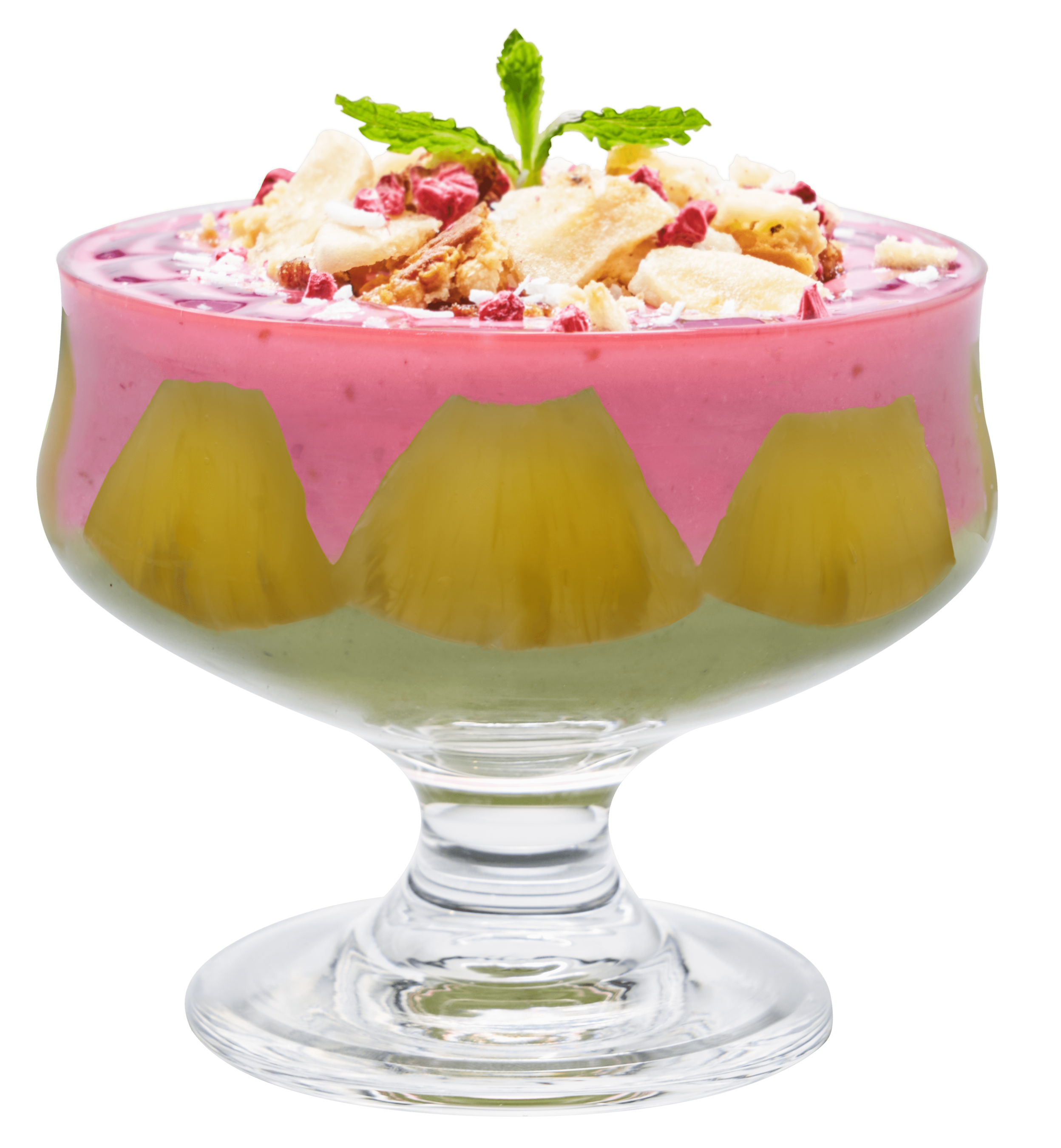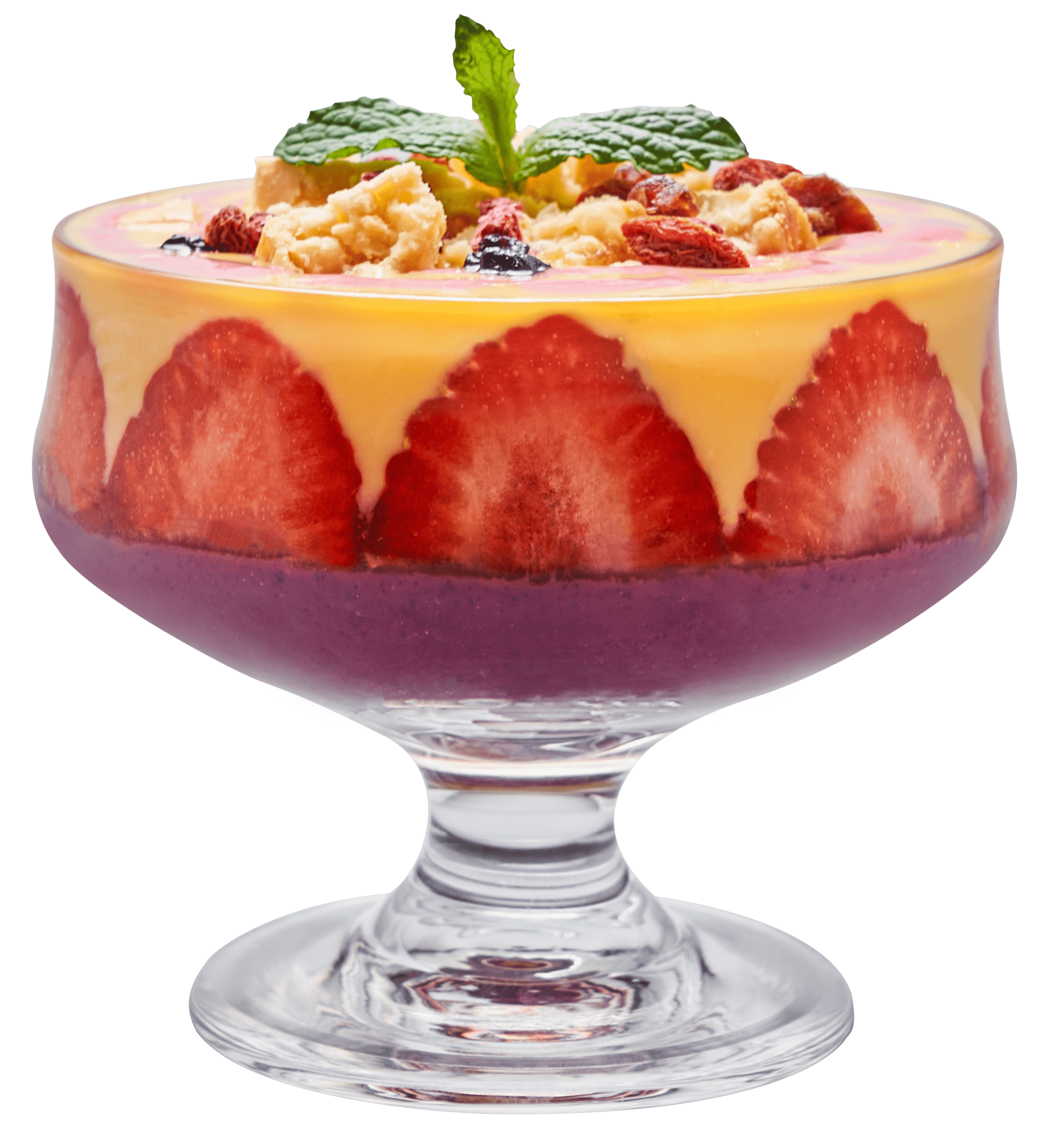 マンゴーパッションとブルーベリーのピューレ入り豆乳ヨーグルトで魔女のようなビビットカラーがアクセントになっています!整腸作用に効果的な食物繊維が豊富なデーツと、鉄分が豊富なクコの実をトッピングし、体にやさしいスイーツに仕上げました。