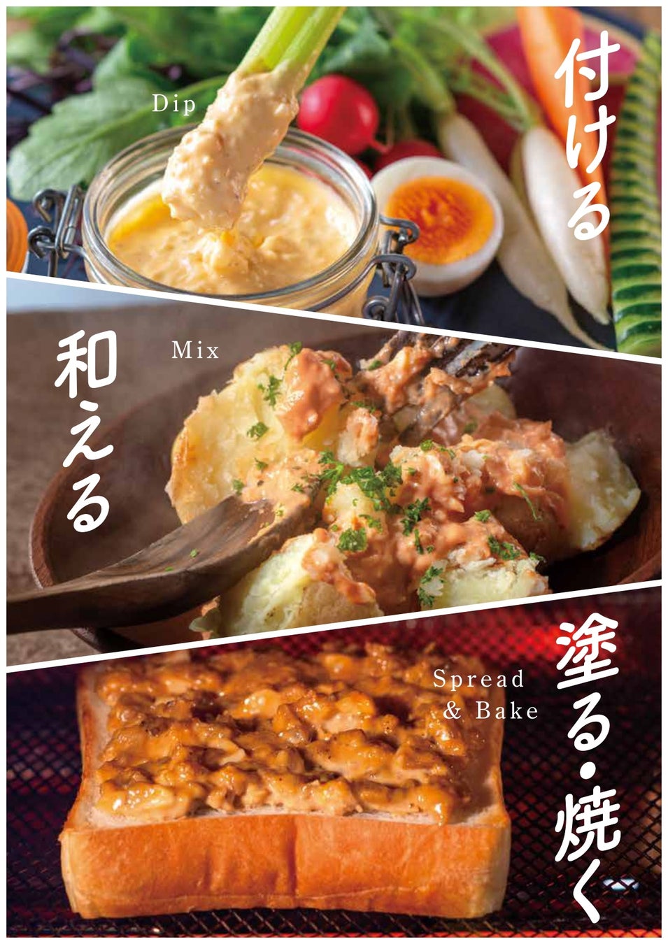 新鮮で上質なこだわり卵「塚だま®」をふんだんに使用する「タルタルファクトリー」のタルタルソースは、いつもの料理や素材を格上げする“魔法の『ごちソース』”です。揚げ物や惣菜のみならず、あらゆる食材に「かける」「つける」「和える」「塗る・焼く」など、様々な用途で食卓を彩ります。