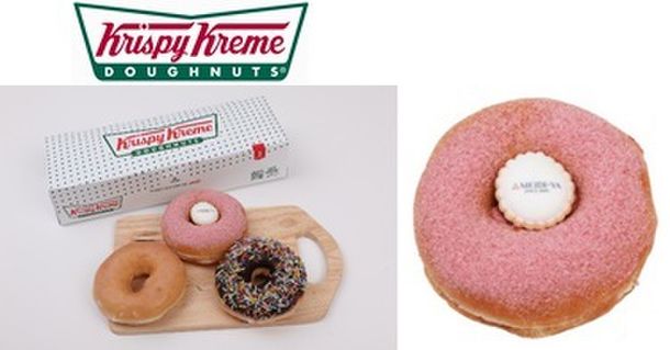 <クリスピー・クリーム・ドーナツ>の人気アイテム2個に、マイジャム(いちご)とコラボしてイチゴミルクのような味わいに仕上げた限定の「果実実感つぶつぶイチゴジャム&ミルククリーム」をセットにしました。