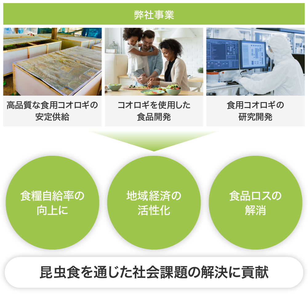 ・事業内容:食用昆虫の養殖事業、昆虫食品の製造・販売、昆虫を利用した養殖飼料の製造・販売