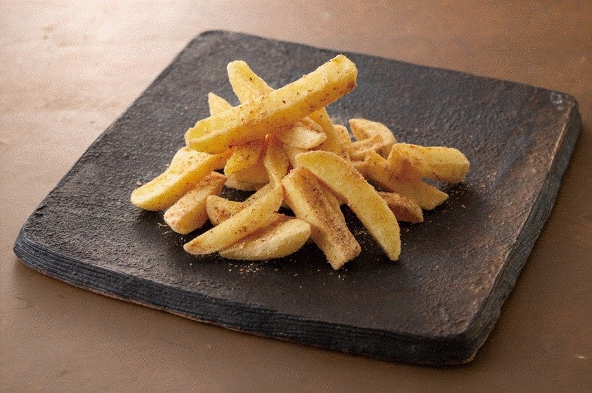 揚げたてのフライドポテトに茅乃舎だし、野菜だしを振りかけて、その場でお客様自身にて、シャカシャカ、フリフリして楽しんで召し上っていただきます。当店オリジナルの商品となります。
