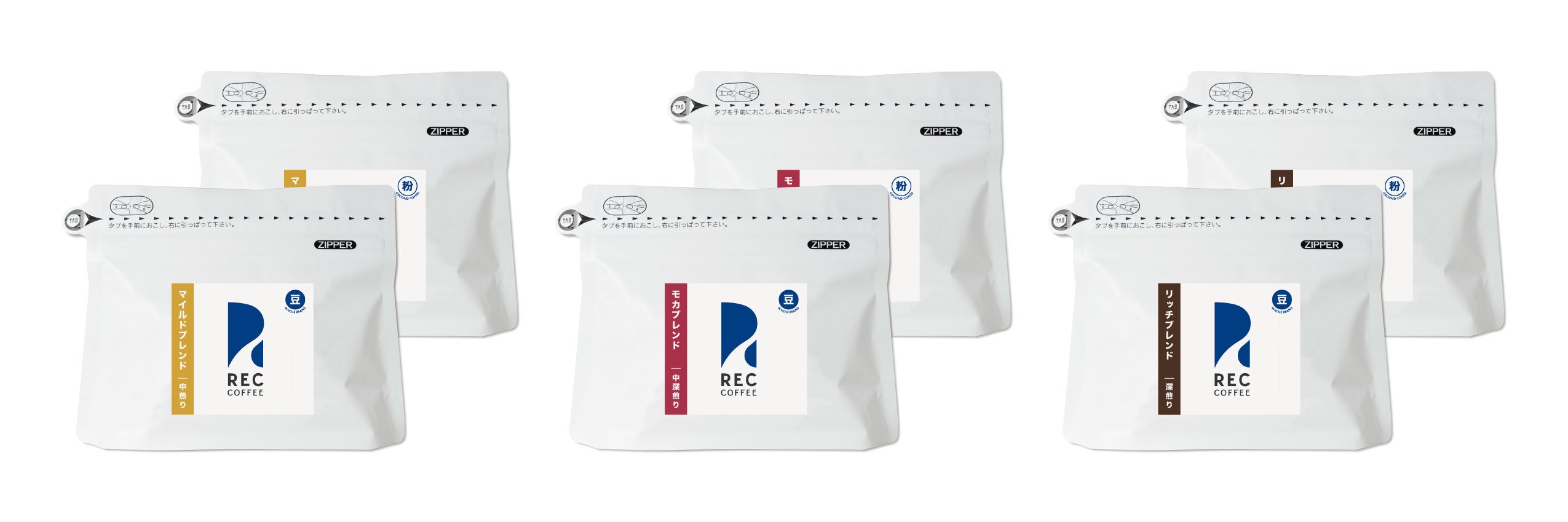 「マイルドブレンド(中煎り)」「モカブレンド(中深煎り)」「リッチブレンド(深煎り)」の3種類を展開します。