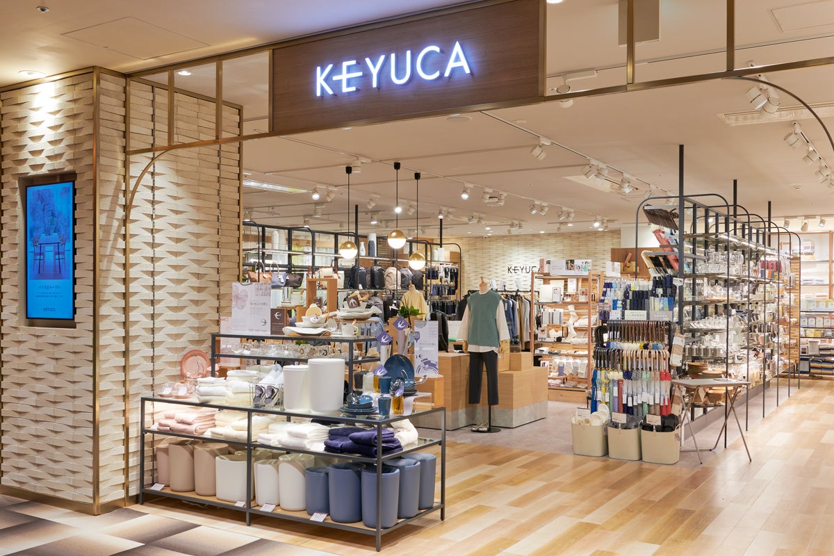 カーテン、家具、キッチン雑貨、食器、バス用品、服飾雑貨などケユカでしか手に入れることができない、オリジナルデザインの商品を、『Simple & Naturalに暮らす。』をテーマに取り扱うライフスタイルショップです。東京都内の17店舗を中心に、60店舗を展開しています。