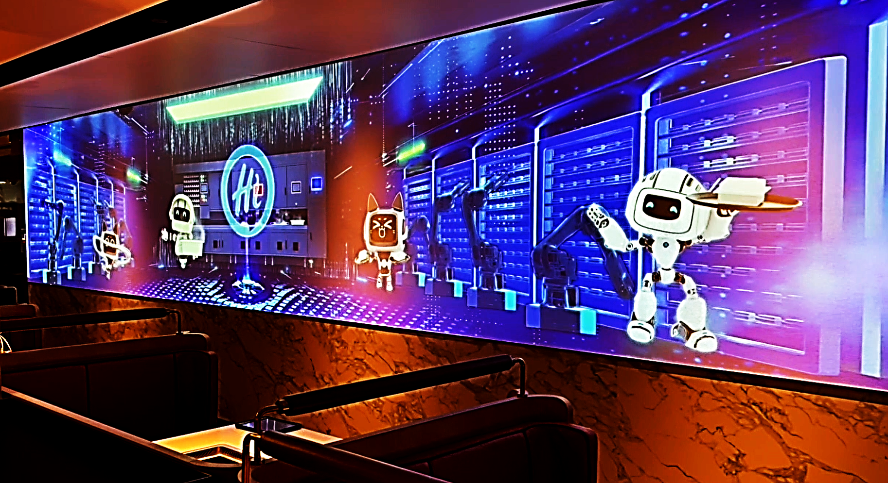 また、本システムのスムーズな導入に寄与したパナソニック コネクト アジアは、パナソニック製プロジェクターを用いた空間演出を提供する映像ソリューションを同店へ導入しました。本ソリューションには、設置・施工から放映コンテンツの制作、さらにコンテンツ配信システムのターンキーソリューションの提供までが含まれます。店舗デザインの初期段階から投影テストなどに参画し、より効果的な店舗空間のプロジェクションマッピング演出に寄与しています。
