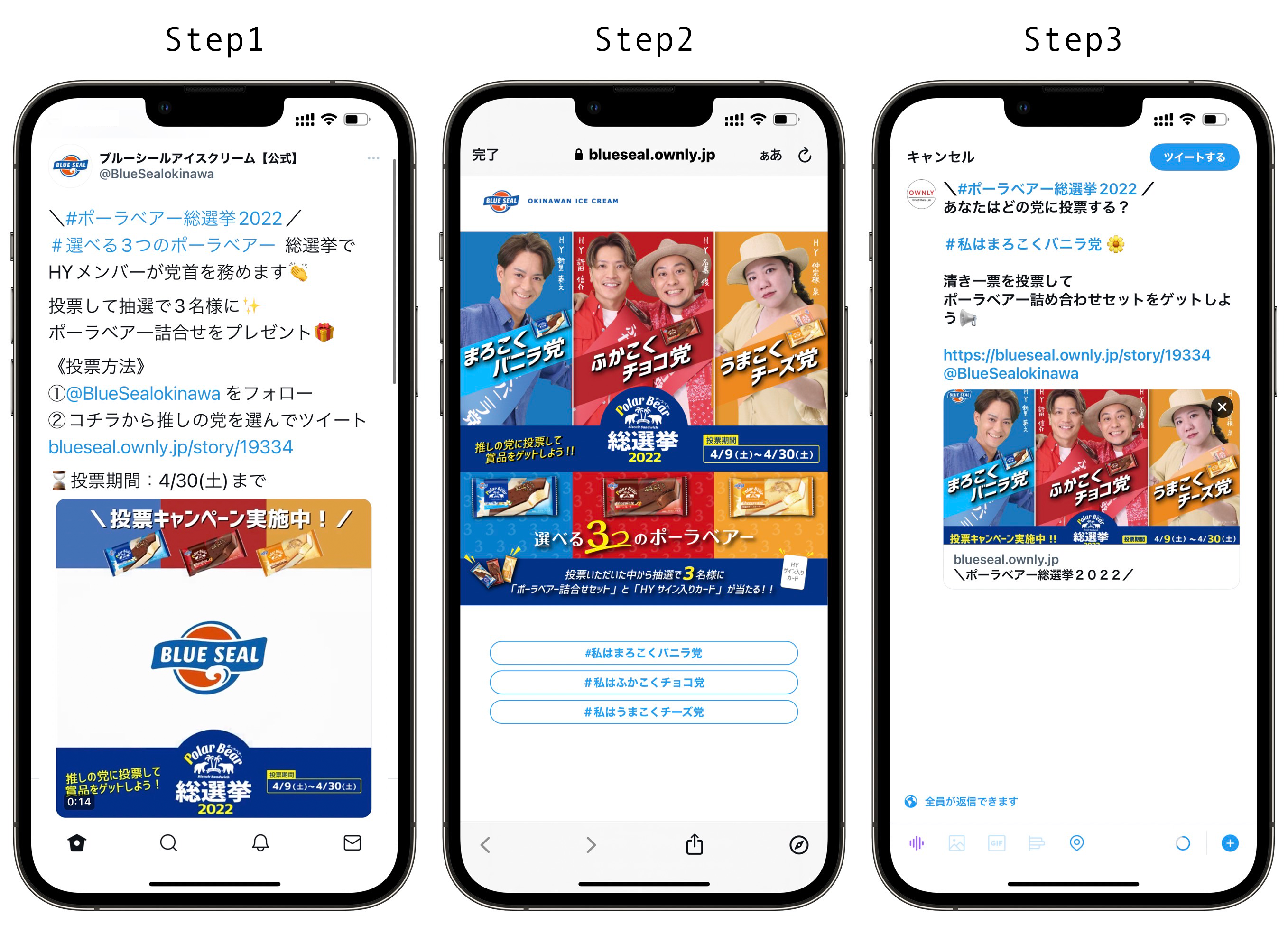 ②『Polar Bear総選挙2022』の該当ツイートより、投票画面に行き、支持する政党を選択してツイート