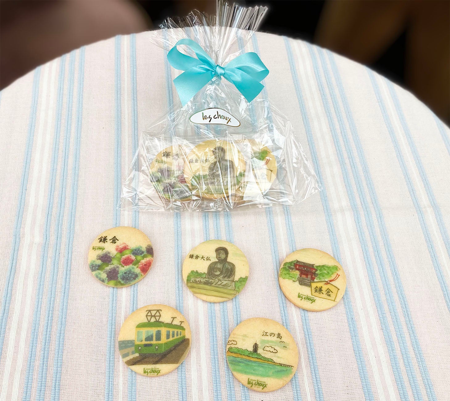 大仏、江ノ島、あじさいなど、鎌倉のシンボルがプリントされたクッキー。1枚1枚丁寧に焼き上げています。
