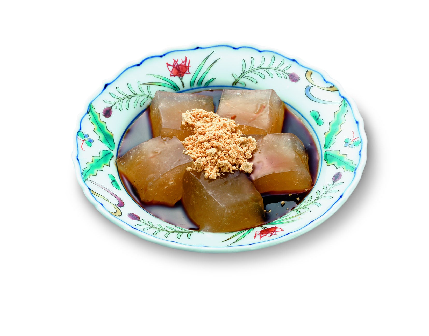生産希薄な本わらび粉を使い、昔ながらの製法で毎日製造しています。銅鍋でじっくり練り上げる素朴な手作りわらび餅は、独特の弾力ととろけるような食感を十分に味わっていただけます。